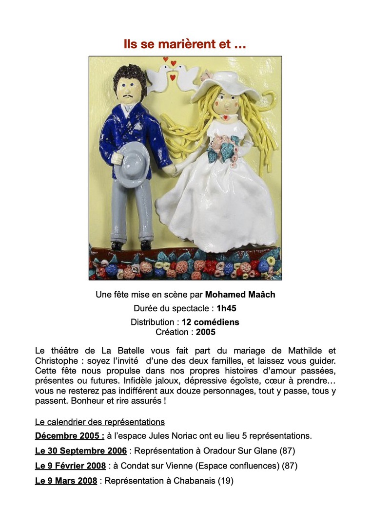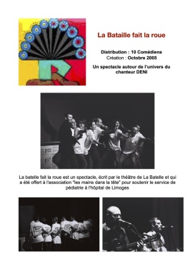 La batelle fait la roue est un spectacle, écrit par le théâtre de La Batelle et qui a été offert à l'association "les mains dans la tête" pour soutenir le service de